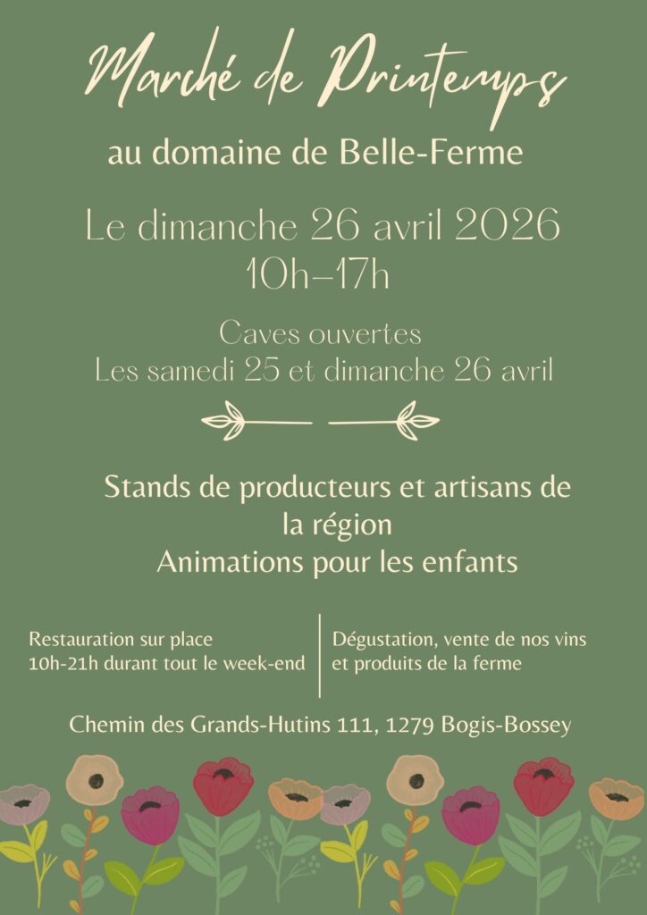 - Dates : Caves ouvertes les 25 & 26 avril dès 10h | Marché de printemps le dimanche 26 avril de 10h à 17h